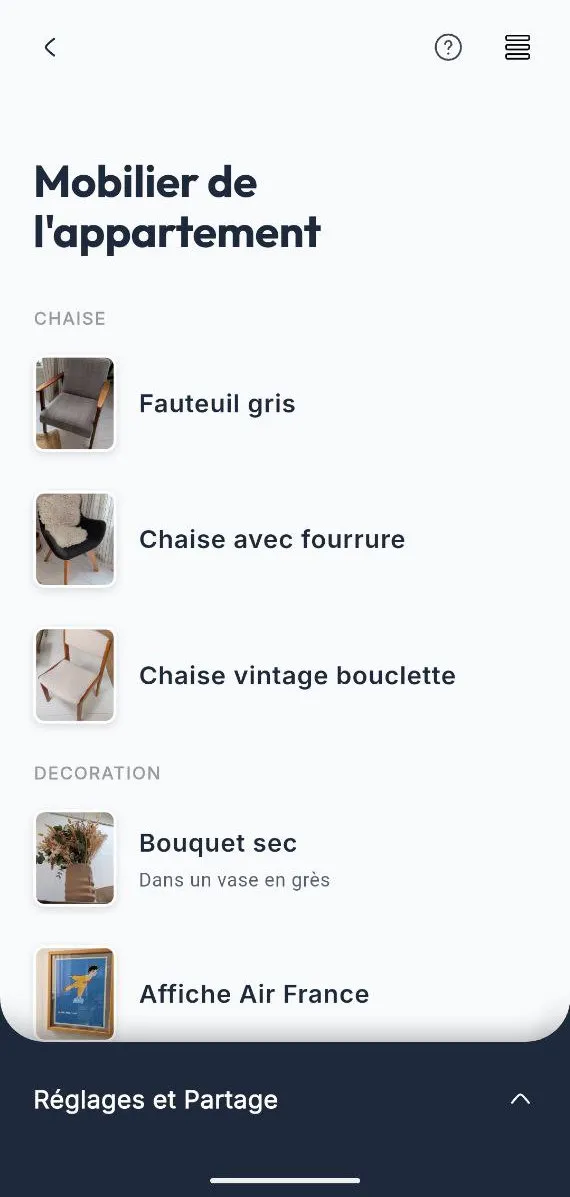 Créez votre liste d'objets en quelques minutes avec la reconnaissance visuelle. Vaisselle, livres ou meubles : fini les tableurs, tout est centralisé.